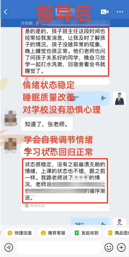 孩子也在张老师的帮助下,积极调整自己的认知,现在孩子的情绪平稳了,睡眠质量也变好了,最主要的是对学校不再排斥,恢复了往日的状态。