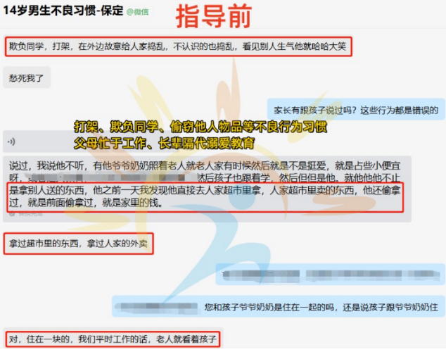 没有底线的隔代教育害苦孩子 隔代教育是大部分家庭生活的常态,尤其是年轻爸妈万般无奈下的一种必须选择,虽然表面上解决了当下爸妈们无人照看孩子的问题,但隔代教育带来的弊端也越来越明显。 尤其是老人没有底线没有原则的关爱,致使孩子沾染一身不良习惯,专横跋扈、自私自利、打架斗殴、偷窃、没有是非、更没有善恶等。 一些严重的甚至在老人的纵容下,直接走向一条不归路,不仅害苦了孩子,更是毁了整个家庭! 1 男孩14岁上初二,父母忙于工作没有时间照看孩子,无奈之下,只能把孩子托付给老人照看。 老人对孩子千般纵容、万般溺爱,致使孩子沾染一身不良习惯,欺负同学、打架斗殴、甚至是偷窃东西。 老人非但不管教,还一个劲的纵容,当父母发现问题时,孩子的性格已经形成,愧疚又悔恨想了很多办法纠正孩子,但效果甚微。 有一次我们休息,为了和孩子增进感情,我和孩子爸爸带着孩子去了超市,结账出去的时候报警器竟然响了,那时才知道孩子偷拿了超市的东西,看着周围人的指指点点,我们恨不得钻进地缝中。 回到家本打算好好地教育下孩子,但孩子的爷爷奶奶又哭又闹一直阻拦我们,看着孩子肆无忌惮又无赖的样子,我们终于意识到了问题的严重性。 为了纠正孩子的行为,我们把孩子接了回来,一番努力下非但没有改变什么,还让孩子更加放肆。 后来一次刷视频过程中,无意中看到了九州金榜家庭教育,在马春英老师的帮助下,那个让我们头疼的小霸王竟然发生了变化,孩子的思想成熟了,认知也得到了提升,并且孩子还对自身的坏习惯有了清晰的认识。 孩子父母对此又开心又惊喜,对马春英老师说道: 2 当初把孩子托付给爷爷奶奶时,我们也猜到了会有一些弊端,但毕竟还要生活、还要工作,不得已最后还是交与了老人。 老人对孩子疼爱有加,没有原则更没有底线,无论孩子要什么老人都设法去满足他,时间久了,孩子身上的不良习惯也渐渐地显现出来。 像极了一个锦衣玉食的小少爷,衣来伸手饭来张口,自私任性,骄纵又蛮横,一不如意就大喊大叫。 当时虽然觉得孩子有些娇惯,但也只认为是小孩子的任性,再加上我们不在孩子身边,心里也想着弥补下孩子,所以就没有多加教育。 就这样孩子在老人的纵容和我们教育的缺失下,变得越来越肆意,欺负同学、霸凌别人、看着别人生气他反而开心的大笑。 甚至到后来开始偷窃,起初偷家里的钱,后来从超市里偷东西,当我们问他为何这么做时,孩子竟然说是这样刺激又好玩。 看着孩子一脸你奈我何的无赖样,我们知道再这么下去迟早会出现大问题,可当我们想要教育纠正孩子时,却发现我们已经无能为力了。 幸好我们遇到了马春英老师,在老师的帮助下,孩子重新走上正轨,我和孩子爸爸也调整了自己的教育方式。 3 隔代教育最大的弊端就是很容易发展成溺爱,老人年轻时由于生活条件所限,无法给予儿女更好的生活条件。 所以,当现在生活水平上去了后,他们就把更多的爱补偿到孙辈身上,因为疼爱过度、处处迁就,这就导致孩子非常任性、生活自理能力低下等。 孩子3岁之前跟着我们生活,性子活泼又好动,经常妈妈、妈妈叫个不停,经常把我们逗得哈哈大笑。 生活中我和孩子爸爸经常有意识地锻炼他,常常让他做一些力所能及的事情,比如摘菜、丢垃圾等,孩子听到我们的要求时,也非常乐意地去做。 后来,孩子要上学了,我们的工作又太忙,只能把孩子托付给老人,一次我们去爷爷奶奶家看孩子,看着儿子就像一个大爷似的,坐在那里指挥爷爷做这个,奶奶做那个。 反观老人非但没有不耐烦,还非常开心地配合着,那时虽然觉得孩子被纵容得有些过头,可看着老人乐在其中,儿子也非常的开心,便没再多加干涉。 若是知道孩子会变成后来的样子,说什么我们当时都会加以阻止并引导教育孩子。直到遇到马春英老师,在老师的帮助下我们才知道,老人没有原则的纵容和溺爱对孩子的伤害有多大。 或许是出于一种补偿心理,很多老年人他们年轻的时候也是忙于工作,没时间照顾孩子。所以在他们照顾孙子时,便会把这种遗憾全都补偿给孙子,会尽量地满足他们的需求。 儿子幼儿时期就像一个小天使,活泼的性子,和那张金句频出的小嘴巴,总是把周围的人逗得哈哈大笑。 可孩子跟着爷爷奶奶生活后,老人把孩子宠得无法无天,更别提管教孩子、教育孩子了。 一次家长会上,孩子老师语重心长地对我们说,我家孩子不仅屡教不改地扰乱课堂纪律,更是欺负霸凌同学,现在更是越加严重。 老师还说每次批评教育他,他的认错态度都很好,本以为孩子知道悔改,但事后又开始了,那些被他欺负的同学都快有心理阴影了。 回去后我们质问了孩子,可还没等我们教育孩子,就被老人制止了,再加上我们不在孩子身边,看着孩子委屈哭泣的样子我们心软了。 当我们发现孩子的情况越加严重时,才意识到老人的溺爱和我们的心软,正把孩子一步步地推向深渊。 孩子天生就像一张白纸,如何在这张纸上描绘,全在家长的教育和引导,若是视而不见任由孩子发展,那么孩子很有可能成为一个没有是非没有善恶的社会败类。 有一次接到孩子老师的电话,老师让我们来一趟学校,到了学校后我们才知道,孩子又欺负同学了,而且这次被欺负同学的家长也来了。 实在是孩子太不像话,几次三番欺负人家女同学,看人家被气得哭泣,他和其他几个坏同学则
