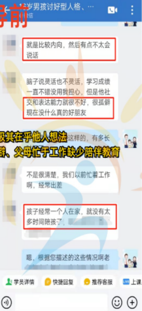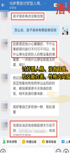 即使他们内心并不快乐,但任然在这种生存姿态下无法自拔,只要别人表现出一点不满足就会毫不犹豫的奉献自己给对方。 不仅如此,他们还常常主动承担本不该自己承担的责任和错误,就怕自己行动慢一步被对方抛弃! 这就是讨好型人格,这类人非常在意他人的建议,不懂得拒绝,不会说不,总是去猜测并迎合他人想法,如同上瘾般习惯地以他人为中心。 他们讨好所有人,唯独忽略了自己! 前段时间收到一位妈妈的求助,妈妈反应她家闺女性子非常矛盾,一方面害怕社交、害怕人多的地方,经常一个人独来独往,沉闷又孤僻。 但另一方面又渴望融入集体,希望与周边的人打好关系,为了获取她人的认可,经常没有原则、没有底线地小心翼翼讨好她人。 哪怕在家面对他们时,孩子也是小心翼翼的事事都争取他们的意见,就怕自己一个不小心惹她们不开心。 孩子总是很大方地请客,不是请同学吃饭,就是请同学们看电影,经常把自己搞得生活拮据没钱吃饭,可即便如此也要表现出一副我很大方的样子。 可即便如此,孩子也没能交到知心好友,多数情况下都是孤零零的一个人,独来独往,孤僻又沉闷! 孩子内心的痛苦和挣扎,让父母心疼不已,担心会因此影响到自身的身心健康以及未来发展,着急的父母最后多番打听下找到了九州金榜家庭教育。 隗哲老师了解到,孩子今天的性格是由于父母陪伴的缺失所致,孩子成长过程中,孩子爸妈很少陪在身边。 在孩子迷茫不解甚至身心感到不安时,父母不仅没能及时引导和安慰,还很不负责任地直接缺失了孩子的成长。 父母的这种教育方式最终导致孩子形成“我要让别人开心,我才能生存的价值观”,过度在意他人的眼光和评价,从而渐渐地迷失了自己。 在隗哲老师的帮助下,一段时间的治疗后,孩子的思想认知得到调整,不仅学会了与人相处,还变得更加自信了。 孩子短时间内发生这么大的变化,让父母感到既惊喜又欣慰,对隗哲老师的专业能力表示了大加赞赏! 以下内容第一人称自述,已经本人允许。 我和孩子爸爸的工作非常繁忙,可以说是常年出差在外,孩子小时候更多的是跟在爷爷奶奶身边。 因为心中有愧,所以孩子零花钱这一块我们一向给得很充足;再加上孩子一向乖巧懂事,成绩也是一直名列前茅;所以对孩子的教育和感受也就更少过问了。 每次出差回家,孩子看到我们总是小心翼翼地,那时并没多想,只觉得是长时间不见的一种想念。 可渐渐地我们发现了不对劲,孩子的性子太过别扭,平时特别喜欢一个人发呆,沉闷又孤僻。 可另一个方面又非常渴望融入集体,为了与同学处好关系,经常没有原则、没有底线地请同学吃饭、看电影。 尽管自己的生活早就紧巴巴地入不敷出了,但还表现出一副特别大方、大家都是朋友的样子。 不仅如此,在人前孩子也从不敢表达自己的思想和观点,经常是附和及顺从他人,就怕与对方观点不一样会被对方抛弃。 隗哲老师说,过度随和、完全不懂拒绝的人,并不能创造出和谐的人际关系,得到的反而是别人的轻视。 人们喜欢和老好人来往,但往往很难真心地尊重她、信任她,因为这种来者不拒,不懂辨别的好,显得很是廉价。 那些迁就和照顾,卑微和迎合、不懂表达和拒绝,并不能让别人记住,相反还会让人觉得没有个性、好利用。 她们小时候取悦父母,长大后取悦世界,却唯独忘了取悦自己! 有一年孩子放暑假,那段时间正好工作不忙,我们休息在家,孩子除了上辅导班就是在家宅着。 我和她爸怕孩子憋出毛病来,鼓励她出去找朋友玩耍,恰好有一天朋友来找她,孩子开心的与朋友出去了。 我去楼下拿快递的时候,恰好看到了孩子和她朋友,可她们相处的方式,让我感到心疼和心酸。 孩子跟在对方后面追赶,对方很不耐烦地朝孩子吼叫,可自家孩子非但没有生气,反而谄媚地向对方道歉。 孩子太希望别人喜欢自己了,于是在痛苦和压抑的边缘,渐渐地丢失自己,一次次的委曲求全,一次次的打破原则和底线,从而成为一个谄媚的人。 隗哲老师说,真正欣赏自己的人,永远欣赏的是我们骄傲的样子,而不是故作谦卑和讨喜的样子。 讨好型人格的孩子,她们对别人的关注和爱的认知是有偏差的,害怕与人起冲突,害怕被人否定;为了不让她人讨厌自己,所以会刻意迎合她们。 而且他们还经常自我暗示“只有我足够优秀别人才会对我好,或者是我要善良我要乖巧听话,别人才会爱我等”。 太渴望别人认可、喜欢自己了,导致无论做任何事情都是唯唯诺诺、小心翼翼! 记得有次出差回来,那次因为工作繁忙在外呆了很长时间,事先也没有给孩子说我们要回来的事,想着给孩子一个惊喜。 孩子看到我们的那一瞬间,不可置信地看着我们傻笑,而且无论做事任何事情都要先过问我的意见。 起初我和她爸爸只觉得,孩子可能是长时间不见粘人而已,可随着时间的推移,孩子做事依然很是小心,凡事都不敢自己做主,都会下意识地看下我和她爸的反应。 孩子的孺慕之情我们自然很享受,但这种做任何事情都唯唯诺诺、犹豫不决的样子又让我觉得心疼,隐隐约约地觉得或许事情并没有我们想的那么简单! 隗哲老师说,孩子的这种反应是源于童年时期所受到的创伤,因为我们从没有或者极少给过孩子无条件的爱。 孩子为了得到我们更多的爱护,所以才会小心翼翼,逼迫自己委曲求全,甚至是妥协一切! 很多讨好型人格的孩子特别在意别人的言辞、看