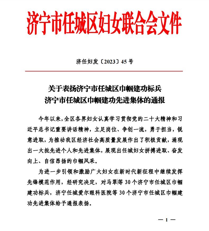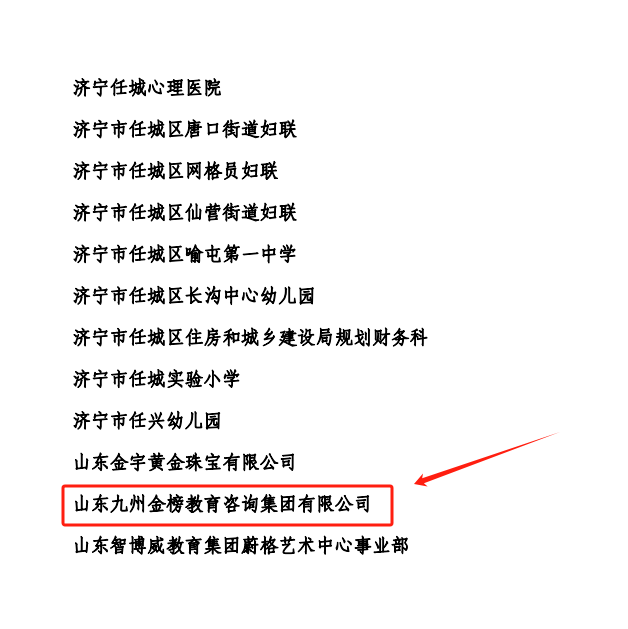 近日,济宁市任城区妇联印发《关于表扬济宁市任城区巾帼建功标兵、济宁市任城区巾帼建功先进集体的通报》,为进一步引领和激励广大妇女在新时代新征程中继续发挥先锋模范作用,妇联对为推动任城区经济社会高质量发展作出了积极贡献的先进集体给予通报表扬。山东九州金榜教育咨询集团凭借其在教育领域的创新实践、优秀的企业文化和突出的女性员工发展成果,得到了任城区妇联的高度认可,荣获“济宁市任城区巾帼建功先进集体”称号。
